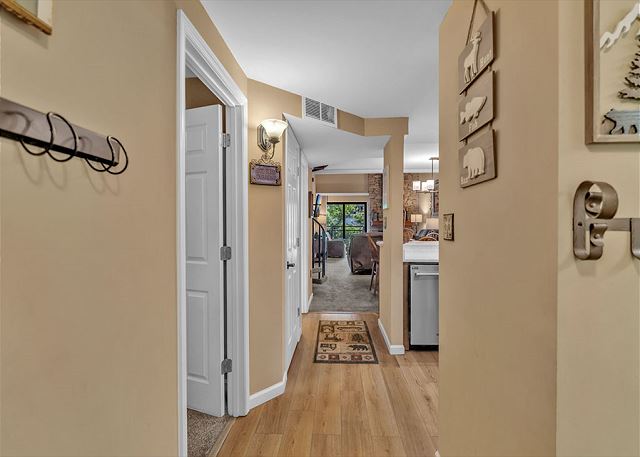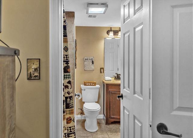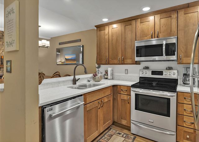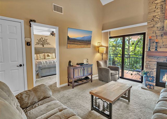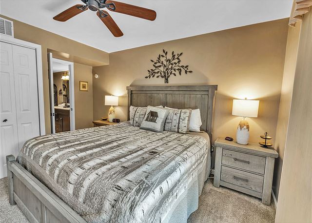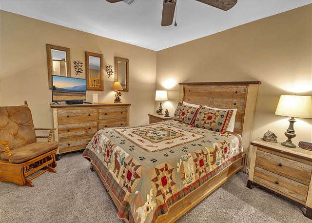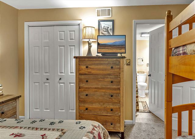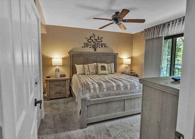 This condominium offers all the comforts for a relaxing visit to the Smokies. The master bedroom has one king bed and the guest bedroom has one queen bed and a set of bunk beds. The upstairs loft has one queen bed and a set of bunk beds. The master bath has a large step in shower and a large jacuzzi tub. The guest bath has a shower/tub combination. The upstairs loft has a full bath with a shower/tub combination. Our fully equipped kitchen offers full size appliances including a dishwasher and microwave. All kitchen utensils are supplied along with glassware, dishes, silverware, and cookware. All linens are furnished. We also provide ample free parking.